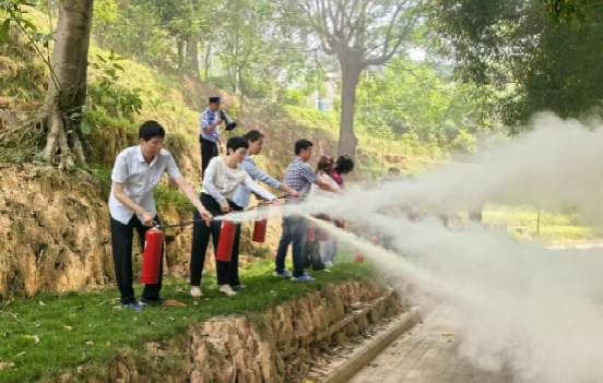 本次演练既是公司贯彻公司安全管理要求的重要举措,更通过多形式、多渠道的宣传教育,深化师生“安全无小事”的防范意识,筑牢校园安全防线,为师生生命财产安全和校园稳定提供有力保障。演练结束后,校卫队队长肖政老师为全体参演师生进行了专题培训。他结合典型火灾案例,系统讲解了火灾分类、自救技巧及灭火器材使用方法。在实操环节中,师生分组练习干粉灭火器的操作,通过“手把手”指导确保每位参与者熟练掌握技能。