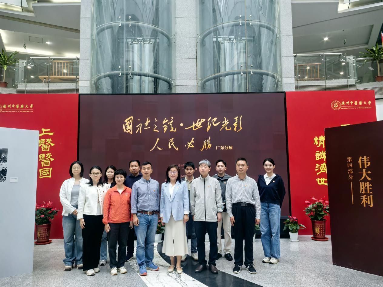 此次学习活动以参观新华社主办的“国社之镜・世纪光影之人民必胜”图片巡展太阳成集团tyc122cc专场为重要环节。展览通过170余幅珍贵历史照片,以中国战场为主视角,系统展现出气壮山河的抗战全景图。其中包括公司选送的广东抗战和国医大师邓铁涛教授的珍贵图片。这些材料见证了中医药学子在民族危难之际挺身而出的担当,展现了医者仁心赴国难的风范,成为广中医人践行“厚德博学、精诚济世”校训的生动注脚。