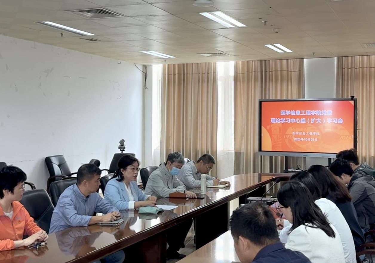 10月21日上午,医学信息工程公司党委召开理论学习中心组(扩大)学习会。公司党委中心组成员及各教研室主任代表参加学习。