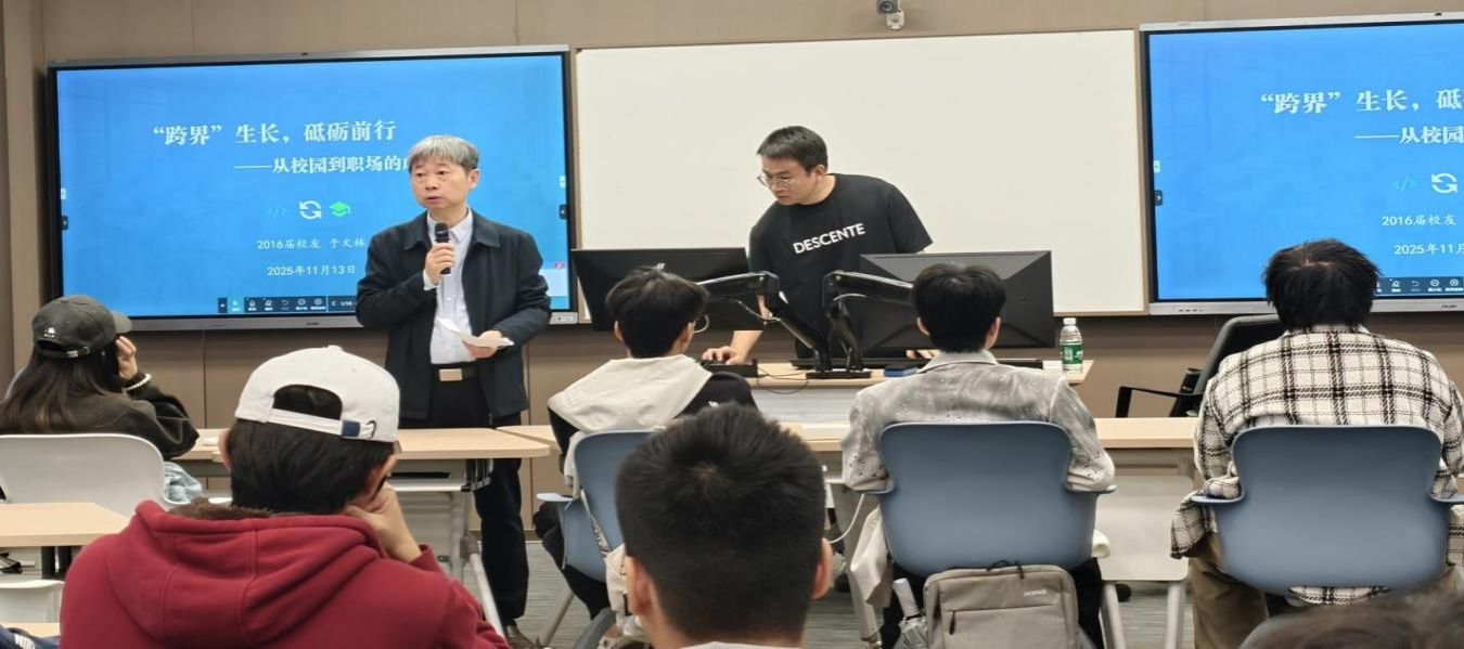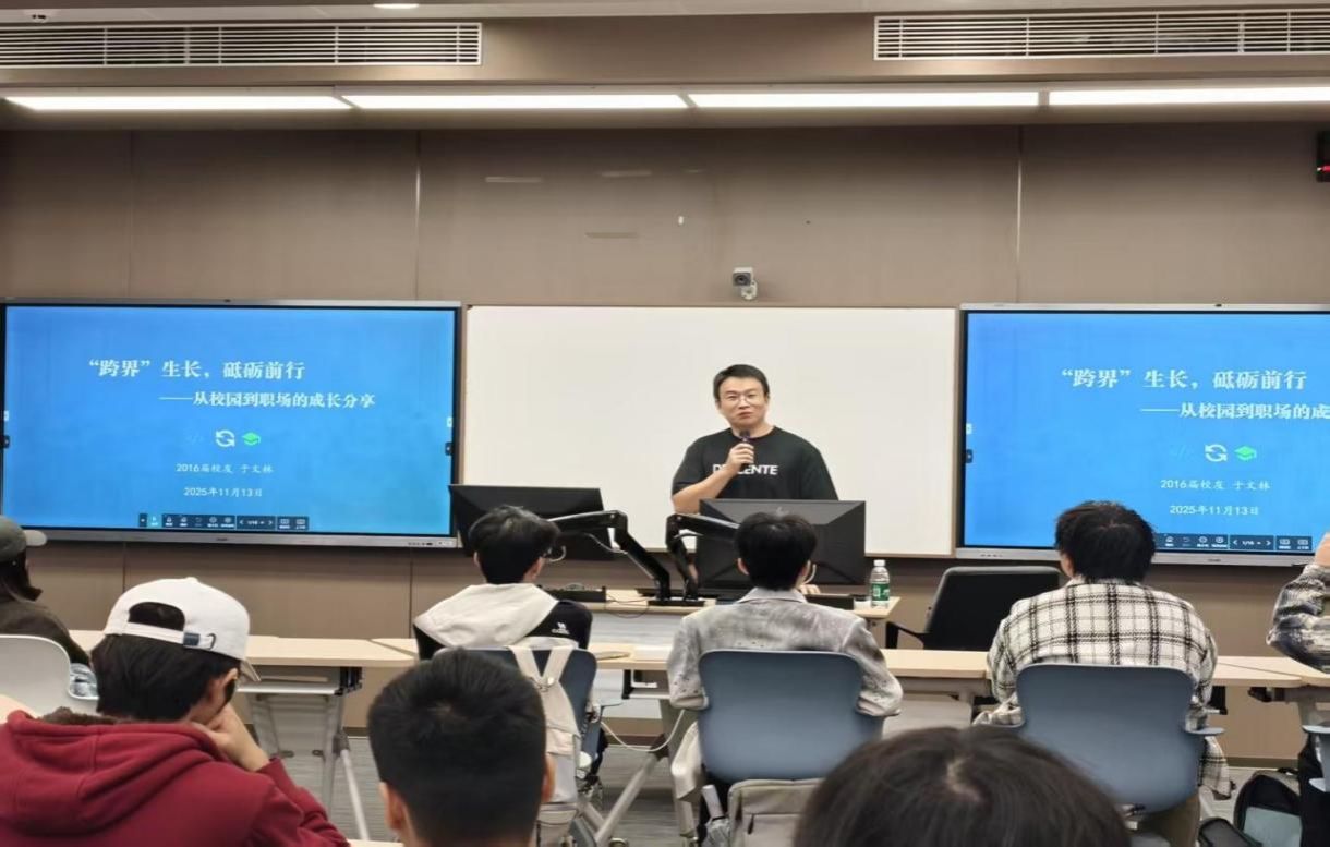 活动特邀2016届优秀员工于文林分享成长经验。于文林首先结合自身从计算机科学与技术专业跨界考研至社会医学与卫生事业管理专业的学习经历,分享了以“扎实专业根基 + 开放跨界思维”为核心的成长心得,阐述了专业能力为“基石”、跨界思维为“翅膀”的深刻体悟。在互动问答环节,同学们就跨专业考研、职业选择等困惑踊跃提问,于文林均给予了细致解答,现场气氛热烈。