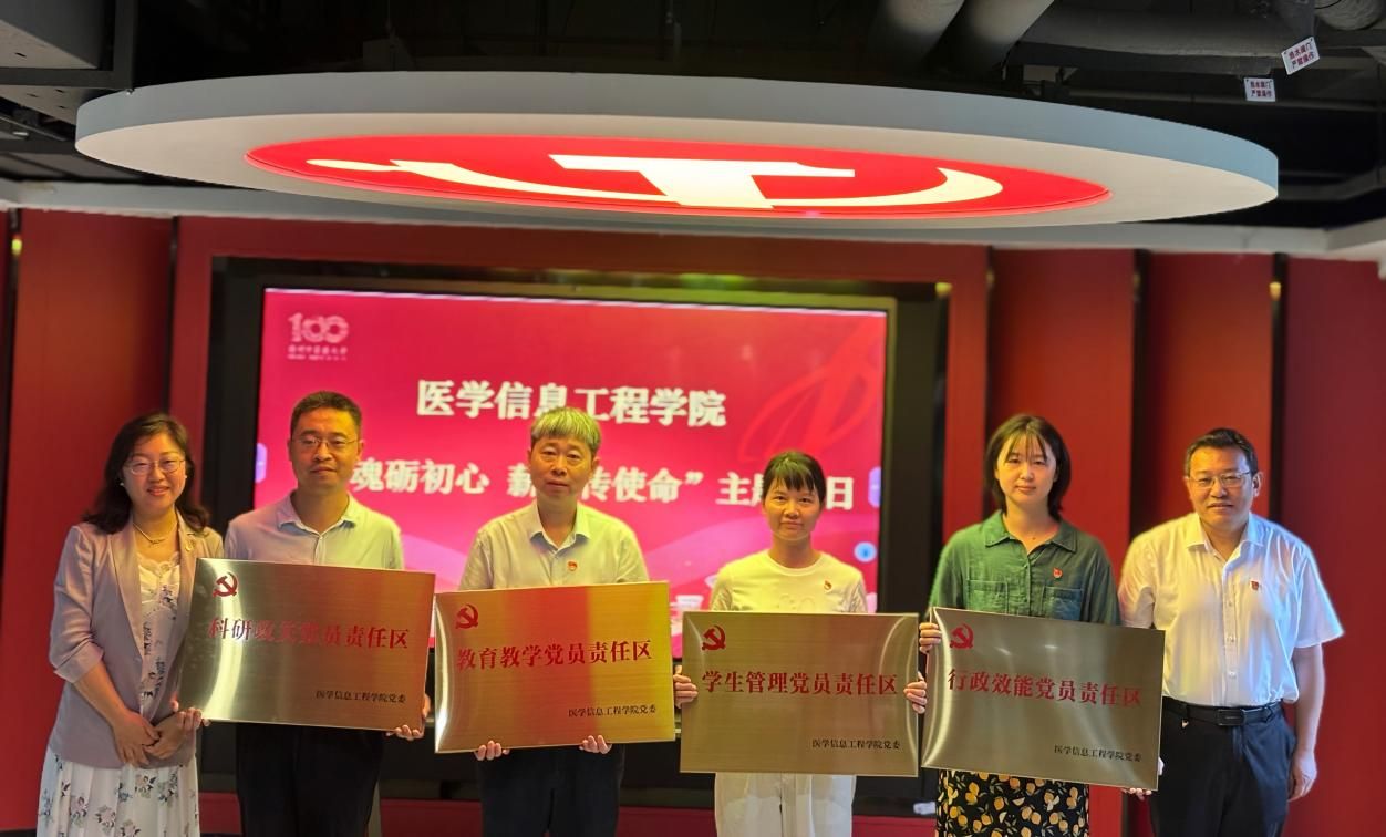 结合深入贯彻中央八项规定精神学习教育,鼓励师生党员亮身份、树形象、作贡献,医学信息工程公司党委选树了一批“党员先锋岗”和“党员责任区”。活动现场,杨荣源为师生党员颁发“党员先锋岗”和“党员责任区”牌匾。员工党员刘思洋、洪楚涵获授“学业领航先锋岗”,李映雪、苟兴悦获授“志愿服务先锋岗”,党员教师代表获授“公司产品党员责任区”“科研攻关党员责任区”“行政效能党员责任区”“员工管理党员责任区”牌匾。杨荣源勉励师生党员,要以先锋为镜,以责任为纲,将党员岗位作为践行初心的实践平台,在学业领航、志愿服务、公司产品、科研攻关等方面充分发挥党员先锋模范作用。
