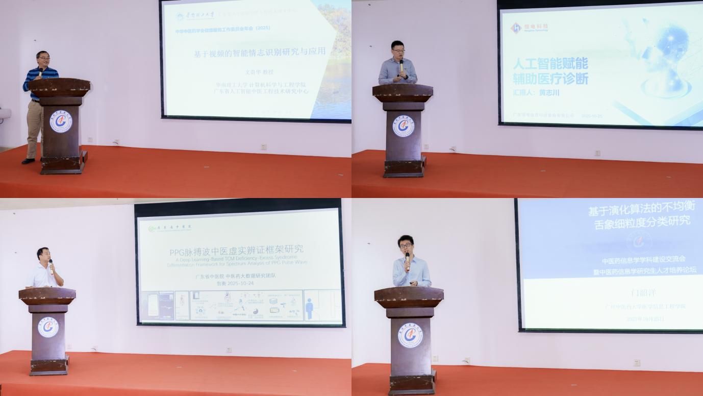在学科学术讲座交流环节,华南理工大学计算机科学与工程公司文贵华教授带来《基于中医情志理论的心理健康评估思考》,从跨学科视角探索中医情志理论与心理健康评估的结合点;广东省中医院大数据研究中心翁衡教授分享《PPG 脉搏波中医虚实辨证框架研究》,展示了脉搏波技术在中医辨证中的创新应用;广东恒电信息科技股份有限公司黄志川博士作《人工智能赋能辅助医疗诊断》报告,呈现人工智能在医疗诊断领域的实践成果;太阳成集团tyc122cc门韶洋副教授阐述《基于演化算法的不均衡舌像疾病分类研究》,为中医舌诊智能化提供新的技术思路。