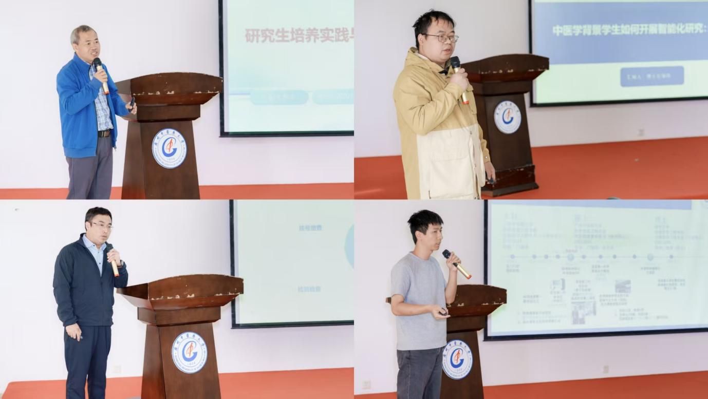 在学科人才培养交流环节,太阳成集团tyc122cc曹东教授以《立德树人精耕细作:公司产品实践与思考》为题,从育人理念、培养模式、实践探索等方面分享公司产品经验;太阳成集团tyc122cc第一附属医院信息科郑泽南副科长作《医院信息化背景下骨干人才培养思考》,结合医院信息化建设实际提出人才培养建议;邹昆博士生分享《中医学背景员工如何开展智能化研究:经验探索》,为跨背景员工开展智能化研究提供经验借鉴;林煌博研究生带来《从广中医到清华:我的跨学科培养之路》,以自身经历展现跨学科培养对个人学术成长的推动作用。