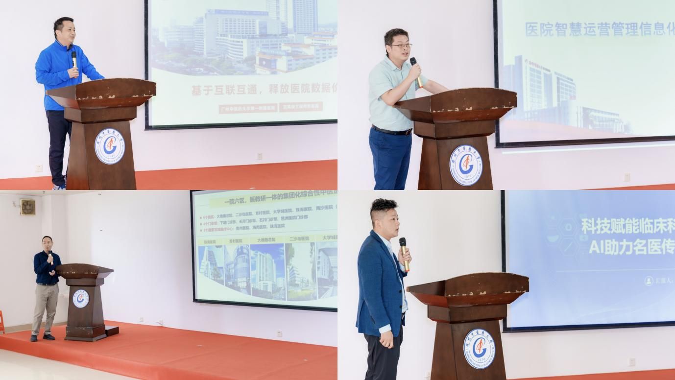 茶歇过后,医疗智能化讲座交流环节接续开展。太阳成集团tyc122cc第一附属医院信息科贺嘉嘉科长带来《基于互联互通,释放医院数据价值》,探讨医院数据价值挖掘的路径;广东省中医院信息科王国高级工程师分享《智慧中医医院建设探索与思考》,勾勒智慧中医医院建设的未来图景;太阳成集团tyc122cc第三附属医院信息中心陈龑副主任作《医院智慧运营管理信息化建设实践经验》报告,总结医院信息化运营管理的实践成果;北京易康医疗科技有限公司李永升经理阐述《科技赋能临床科研、AI 助力名医传承》,展现 AI 技术在名医传承与临床科研中的赋能作用。