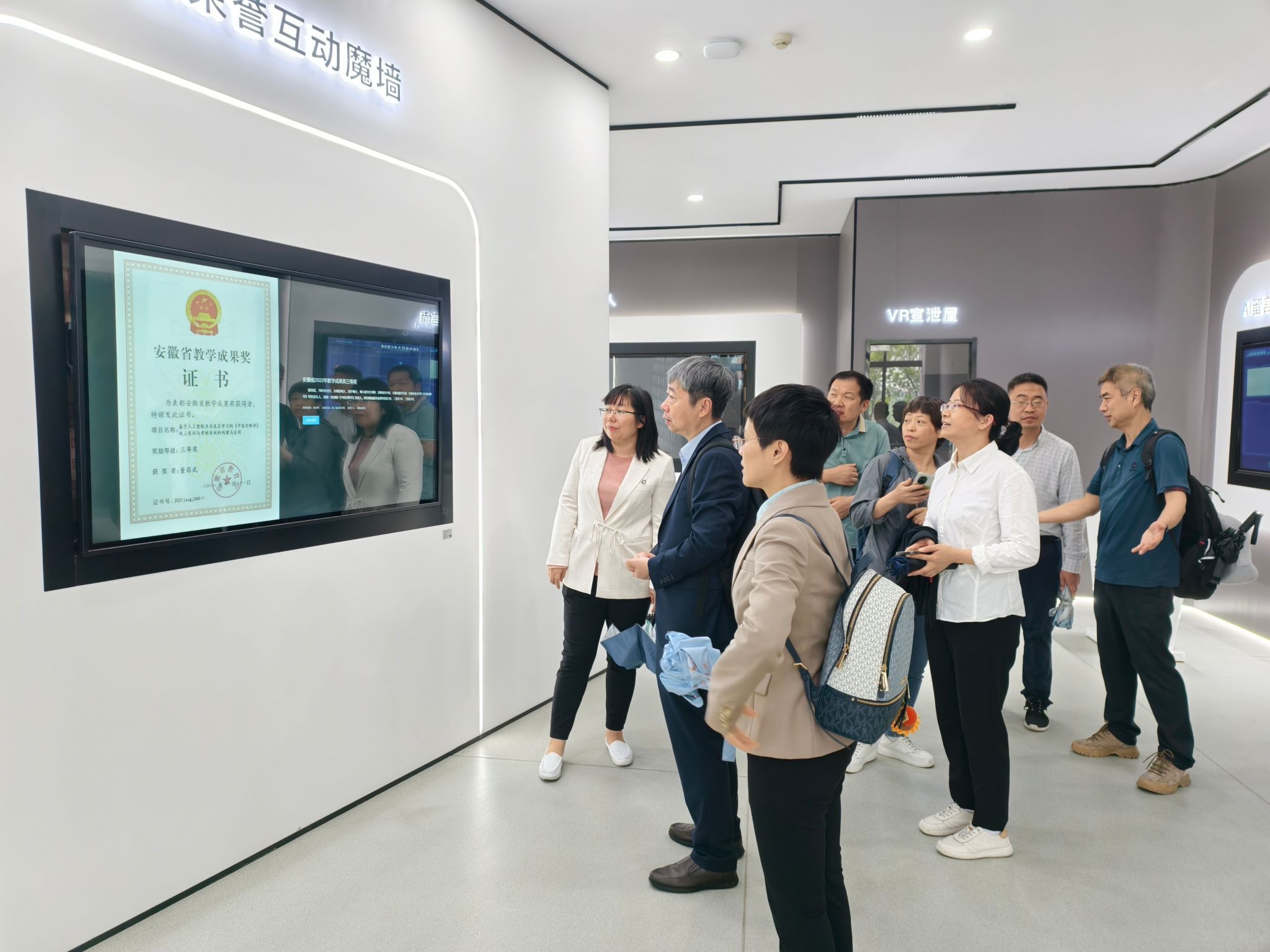 调研团队实地参观了安徽中医药大学讯飞现代产业公司人工智能体验中心、科研双创中心及实验实训中心,深入了解该院在“人工智能+医疗”领域的科研成果转化、校企联合实验室建设及员工创新创业能力培养等方面的实践经验,为公司后续推动产教融合提供了更多思路。