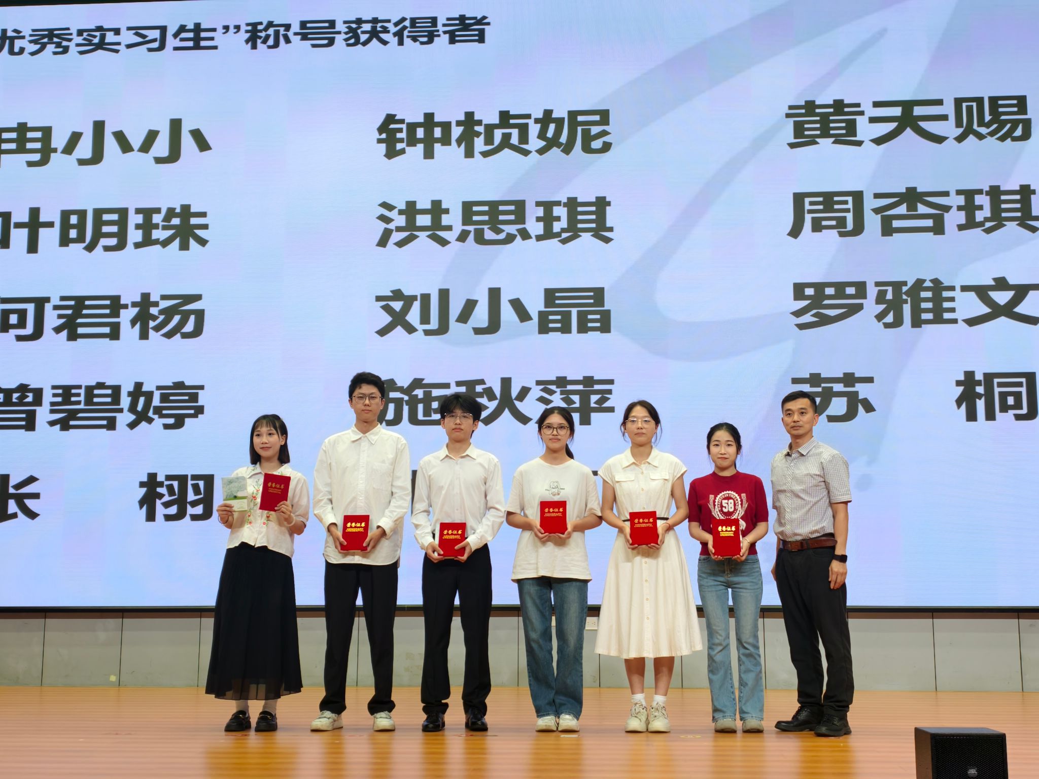 谭劲力副书记为获评“2025届优秀实习生”荣誉称号的毕业生颁发证书。
