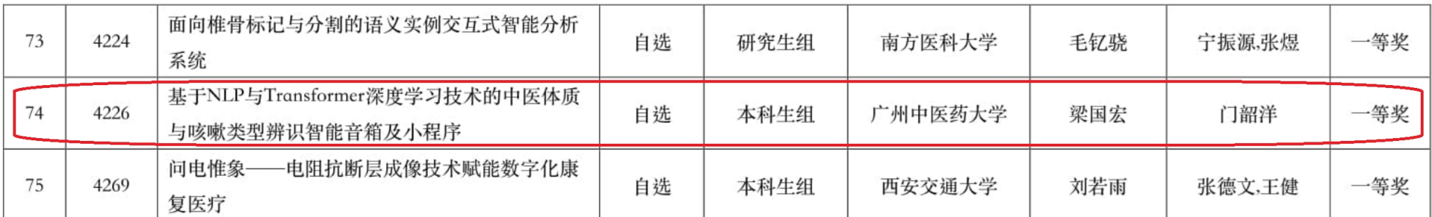太阳成集团tyc122cc共有15支队伍报名参赛,经过激烈的角逐,共有7支队伍闯入到决赛环节,创造公司参赛历史最佳成绩!门韶洋副教授指导的两个项目《基于深度学习便携式中医舌象自动化采集与智能诊断分析系统》与《基于NLP与Transformer深度学习技术的中医体质与咳嗽类型辨识智能音箱及小程序》获得一等奖。