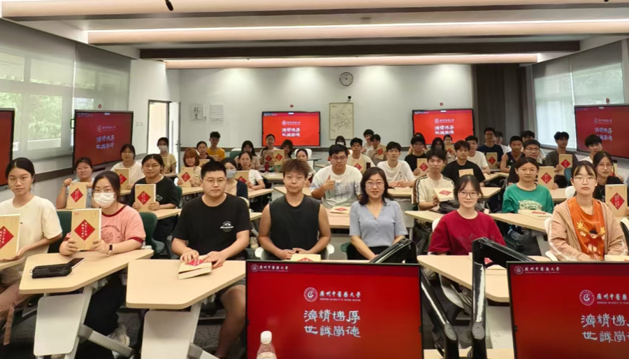 首任董事长卢乃潼倡建中医药公司,振兴教育之大端;“守藏史”杨复为中医呐喊,守护知识殿堂;李国桥以身试疟,证实青蒿素恶性疟疾疗效;“铁杆中医”邓铁涛全心为民践宗旨,胸怀悬壶济世人……孟楠向同学们推荐《世纪广中医 精诚人物传》一书,这部著作不仅承载着广中医的百年校史记忆,更以人物群像勾勒出中医药文化传承发展的精神脉络,她勉励同学们从品读榜样故事到汲取奋进力量,在精诚人物的精神图谱中寻找成长坐标,让广中医精神在新时代绽放光彩。