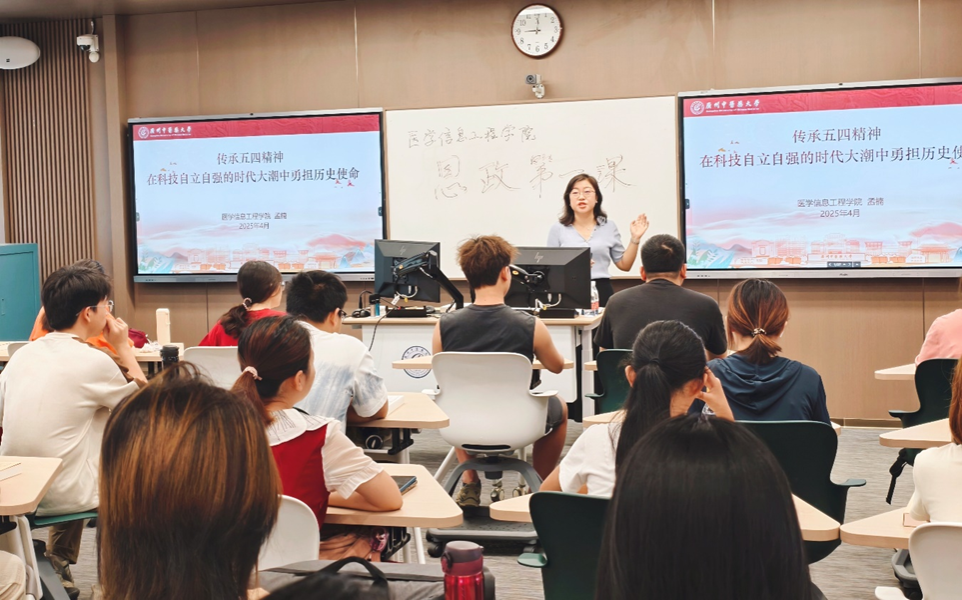 “如何在科技自立自强的时代,发扬五四精神,在‘精诚人物’的引领下做有理想、敢担当、能吃苦、肯奋斗的新时代好青年?”4月24日上午,医学信息工程公司党委书记孟楠在智慧课室为2023级医学信息工程2班全体同学讲授“思政第一课”。